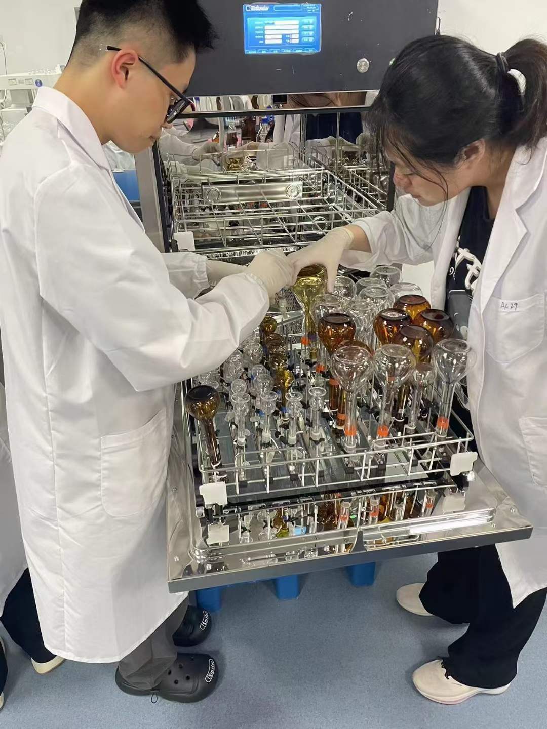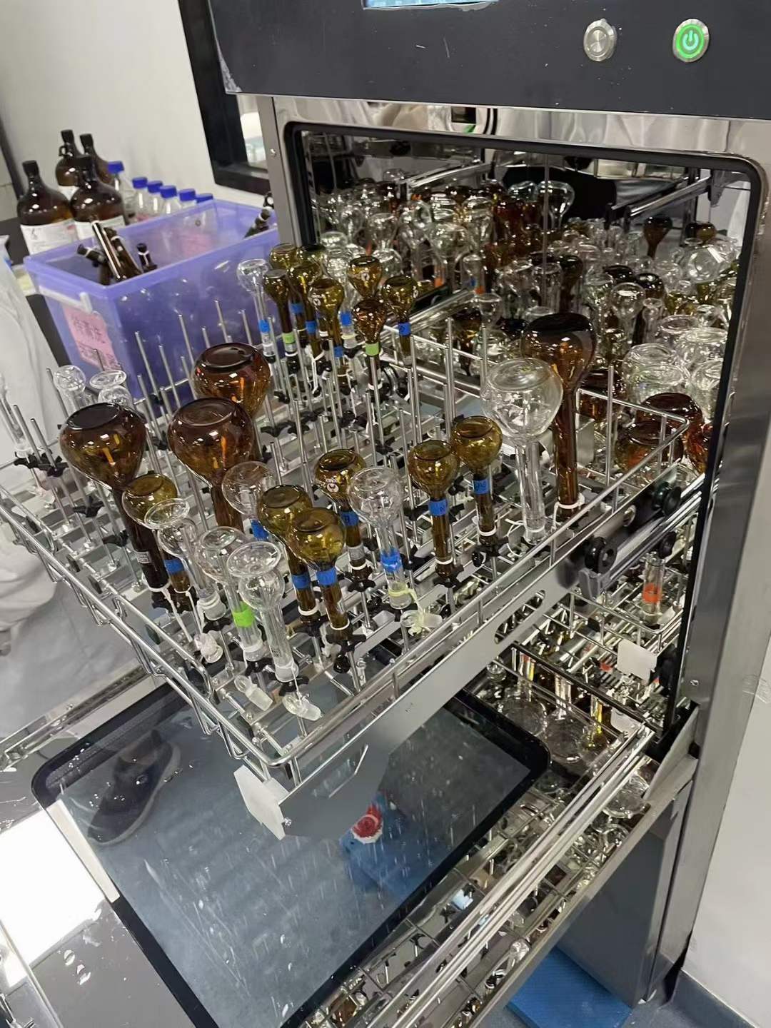 福建海西新藥全自動器皿清洗機,安裝驗收完成。實驗室老師非常滿意,一款符合制藥行業GMP法規要求的全自動、高效、節能環保型實驗室洗瓶機,幫助老師解決清洗難題,有效提高實驗室生產效率和質量。
