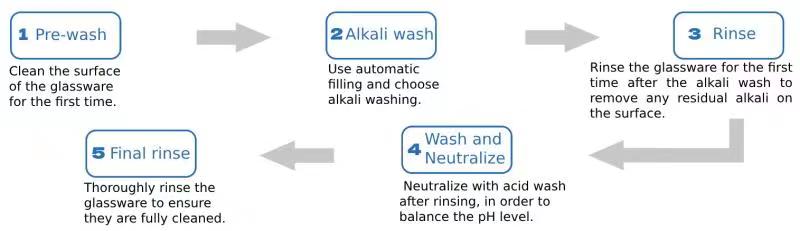 Load the laboratory utensils onto the container loading basket, load them into the inner cavity of the cleaning machine through the slide rail, remove the pollutants (including organic matter, inorganic compound, protein, etc.) on the containers through the cleaning steps, and clean the residues on the containers; Remove pollutants and cleaning agent residues on the utensils through rinsing steps, so that the ion residue on the utensils is lower than the detection limit. Remove cells, viruses, and bacterial residues on the utensils through disinfection steps, reducing the number of live microorganisms to the specified level.